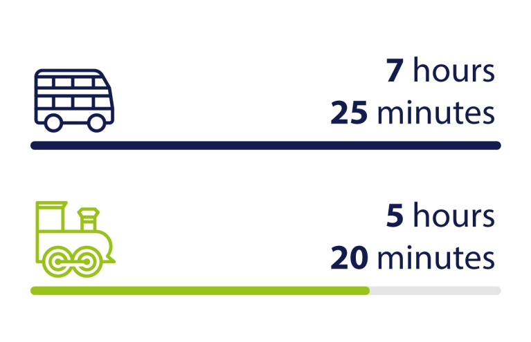 A bus ticket will take you from A to B, but if you want to go any further you’ll have to book each leg of your journey separately. This can be risky, as unpredictable delays caused by traffic on the roads can mean missing your connection, costing you a lot more.